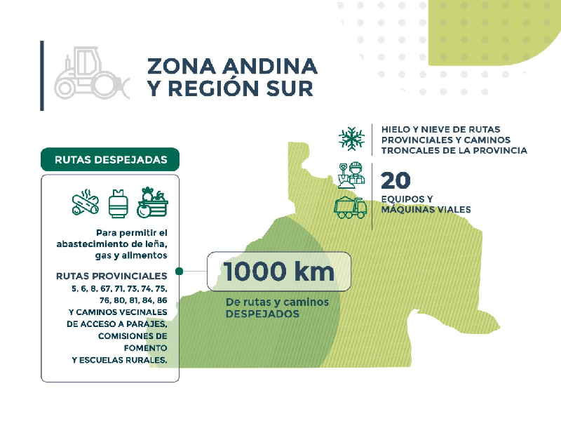 Como cada invierno, la Dirección de Vialidad Rionegrina lleva adelante un operativo de contención, cuyo fin principal es el despeje de hielo y nieve de rutas provinciales y caminos troncales de la provincia.