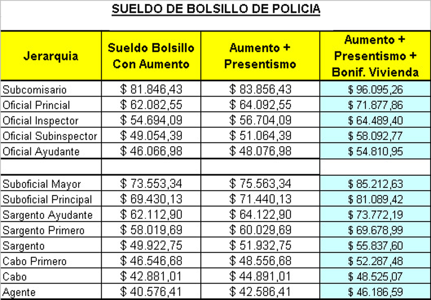 Así quedarán los sueldos policiales con el aumento otorgado por el Gobierno