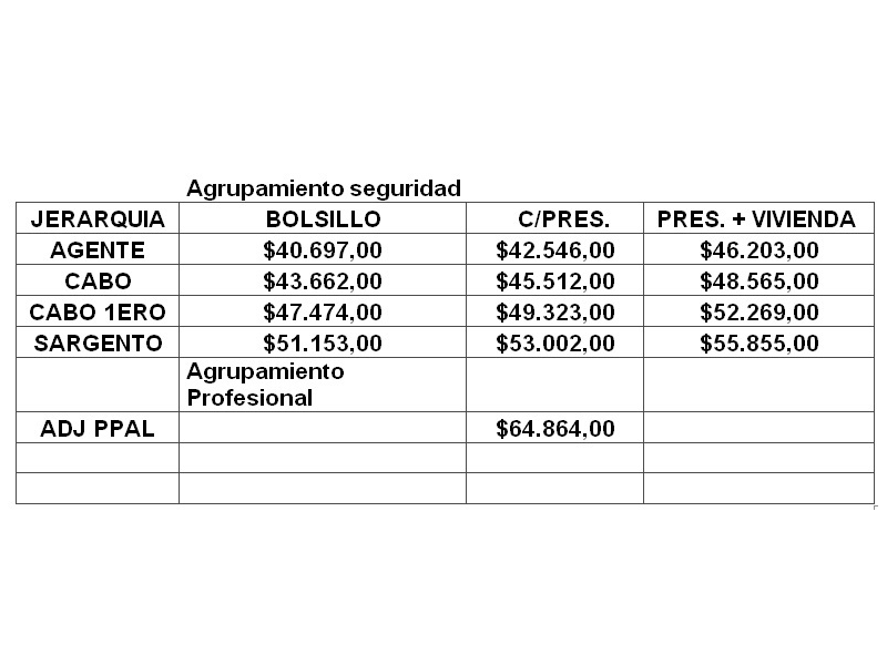 El aumento corresponde para las jerarquías de Agentes a Sargento en la modalidad subalternos, escalafón Seguridad, y para el personal superior conformado por: Adjutor Principal, Agrupamiento Profesional, los cuales conforman los Gabinetes Criminológicos de las Unidades Penales.00051660